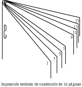 Imposición estándar de cuadernillo de 16 páginas.